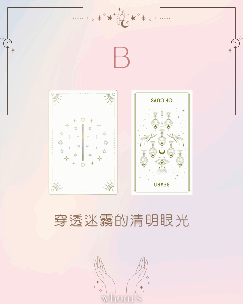 面對選擇過多、思緒混亂的時刻,宇宙會送你一份「分辨真正渴望」的力量。8月你可能會面對各種誘惑、機會或想法,但這張牌讓你清楚看見哪些是真正有價值的,哪些只是短暫的幻想。你會慢慢學會:不是每個選擇都值得你投入時間與能量。