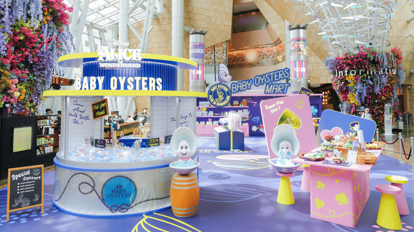 場內設有五大夢幻打卡區,從「Oyster Bar」互動區、瘋狂下午茶場景,到珍珠尋寶遊戲、限定精品購物區,一步一驚喜。記得參加SNAPIO別注自拍亭,選用限定主題相框,與心愛的Baby Oysters合照留念!