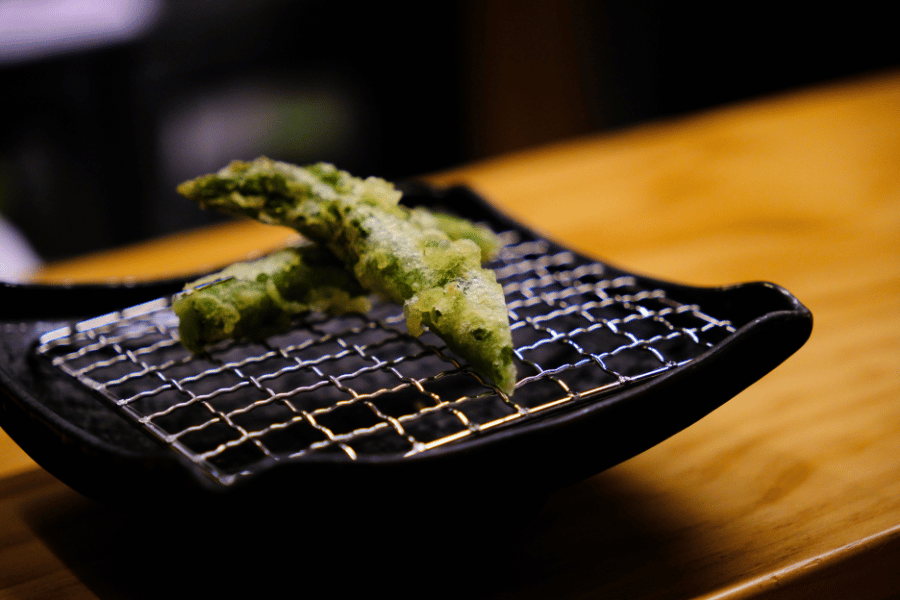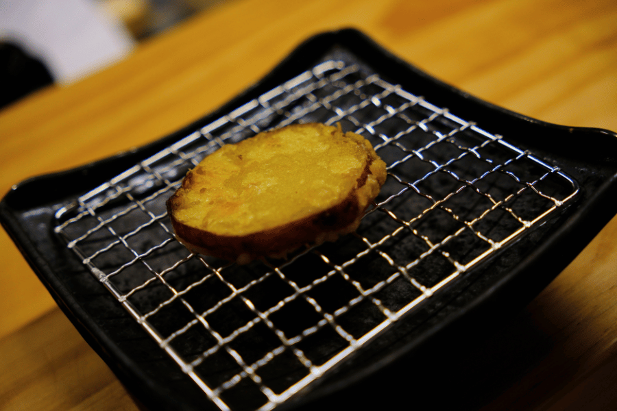 在這裡,每一道天婦羅都是即點即炸,完美展現職人對油溫與火候的精準掌控,才能炮製出擁有誘人的金黃色外表,又能保持食材真味的天婦羅。店員會建議不同款式的天婦羅配搭不同的調味料,如:海鹽、岩鹽、七味粉等等。