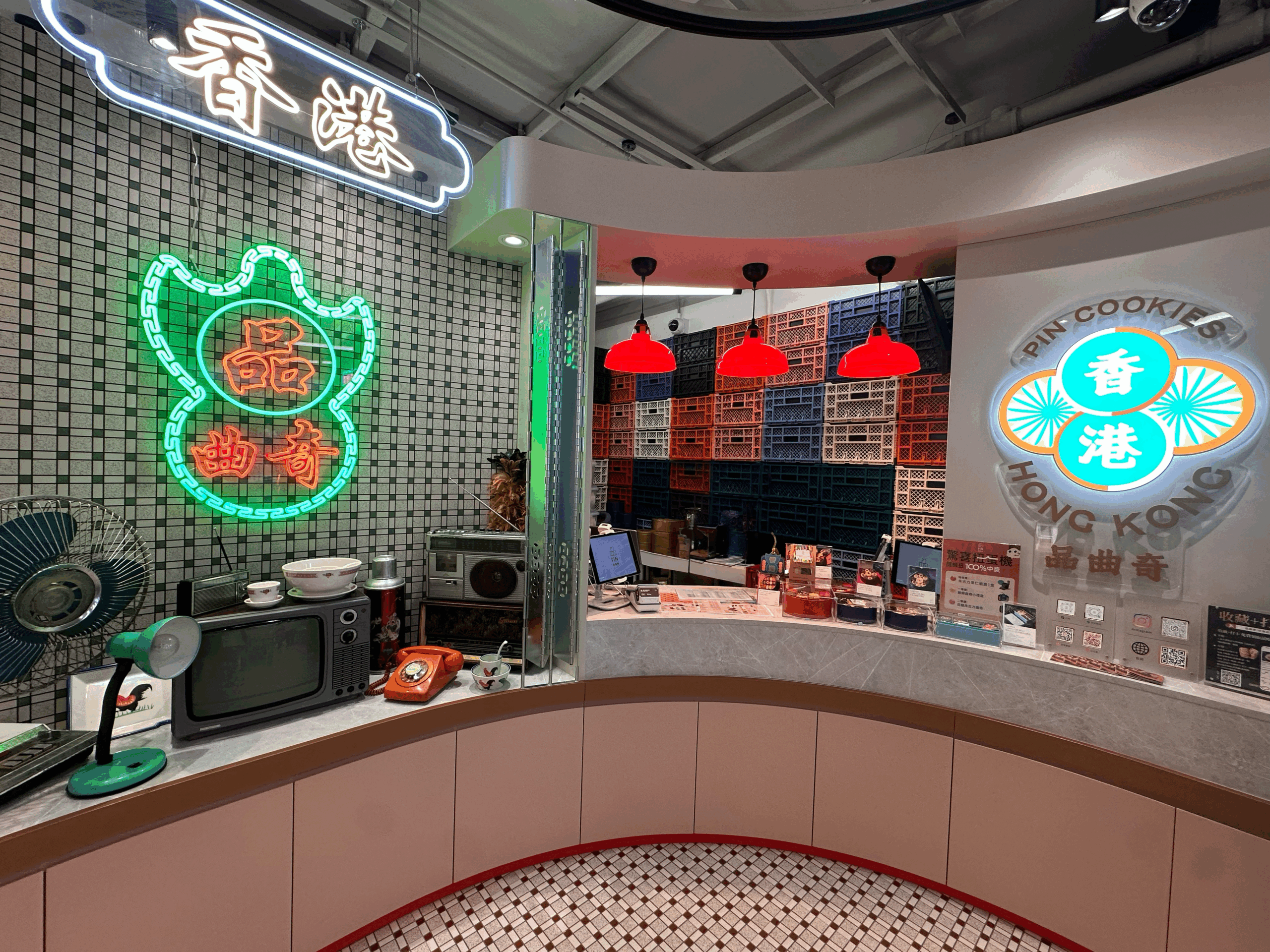店內牆身飾有年代感的格仔階磚、郵箱、霓虹燈牌,還有舊電視、風扇等,讓你在挑選曲奇時也可盡情打卡!